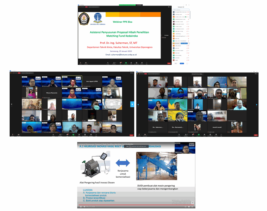 Pada hari Rabu, 25 Januari 2023, untuk perdananya Pusat Penelitian Keilmuan LPPM Universitas Terbuka kembali hadir dan menyelenggarakan webinar UTPPK BIsA! dengan tema “Asistensi Penyusunan Proposal Hibah Penelitian Matching Fund Kedaireka” dengan paparan materi dari Prof. Dr.-Ing. Suherman, ST, MT yang merupakan salah satu narasumber dari Departemen Teknik Kimia, Fakultas Teknik, Universitas Diponegoro.